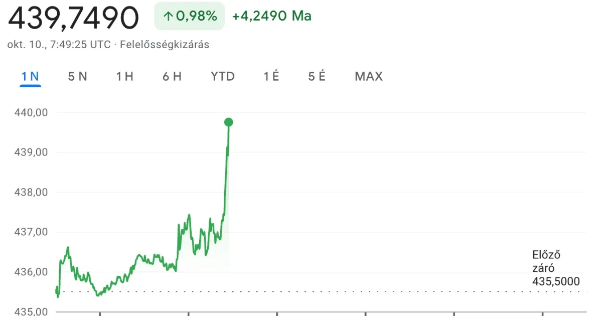 Na, ha netán visszamegy 430 alá (mielőtt kilő 450-ig), lehet majd a megafonosokat hallgatni, amit hallelujáznak a zseniális magyar pénzügypolitikának. Sakkmatt, lipsyk! 🤑